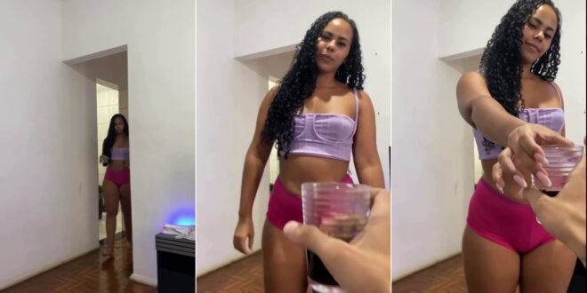 She grabs a refreshing dark drink to kick off the vibes. Watch the full video to see it all unfold.