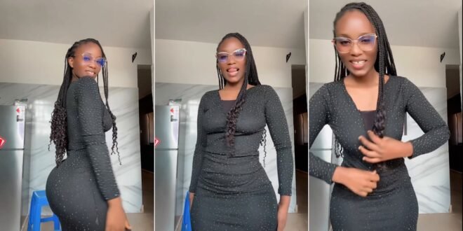 Dressed in a dazzling, glitter-speckled black dress, complete with stylish gold-rimmed glasses and flowing box braids, she commands the frame with every move. Her dance is a beautiful blend of subtle hip movements, playful hand gestures, and expressive facial cues, all perfectly synchronized with the music. Watch as she winks, shimmies, and showcases pure, unadulterated happiness against a sleek kitchen backdrop. Don’t just read about it – experience the full captivating performance and let her energy brighten your day!