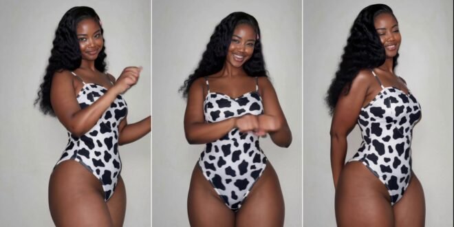 The video’s impact lies in its simplicity and confidence. The woman’s bright smile, playful gestures, and the eye-catching swimsuit create a memorable visual experience. The song’s suggestive lyrics, combined with her poses, create a flirty and confident vibe. See the cow-print swimsuit sensation for yourself!