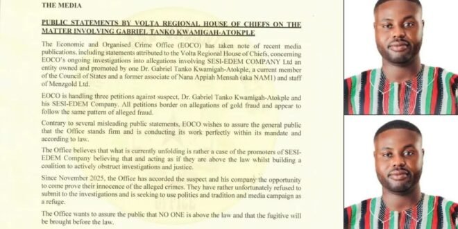 EOCO is now officially looking for him. He’s tied to some alleged gold fraud involving a business called SESI-EDEM Company Ltd.