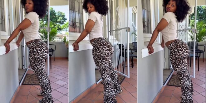 She brings the heat on a sunny patio with a pose that screams confidence. Watch the full video to see the whole look!
