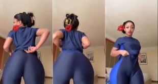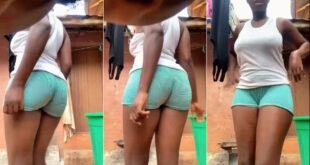 Step into a moment of pure, uninhibited expression captured in a recent social media video. We see a radiant dark-skinned woman, dressed casually in a white tank top and stylish light blue/green striped shorts, owning her space in an outdoor setting. The video opens with her in a dynamic partial profile, hinting at the vibrant energy she’s about to unleash. …