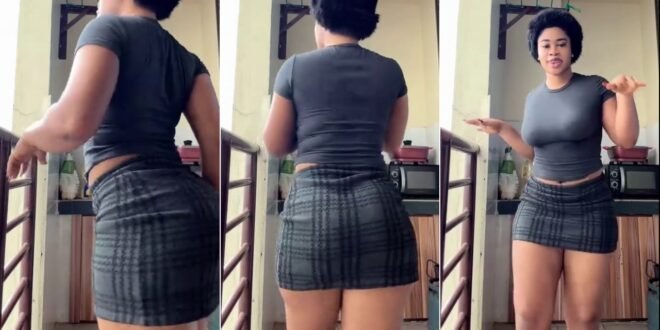 The grey plaid skirt and matching tee make for a perfect casual look. You have to see these moves for yourself—check out the full video!