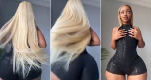 The focus remains primarily on the woman as she moves, with the camera angle emphasizing her silhouette. The text “PETITE TUMI” emblazoned on her shorts sparks curiosity, hinting at a brand association or personal identifier. The absence of audio allows viewers to focus on the visual elements, enhancing the video’s sensual and confident mood. See what everyone’s talking about and watch the full video now!