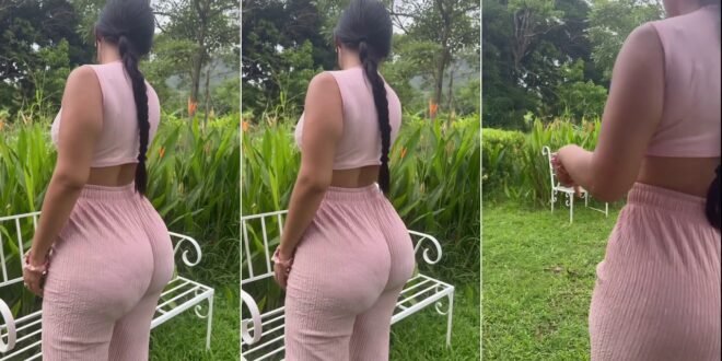 Watch as she slowly makes her way across the grass toward a classic white bench, letting the peaceful surroundings take center stage. Hit play to enjoy every relaxing step of the full clip.