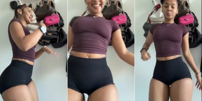 “paragraph1”: “Ever stumble upon a video that instantly captivates with its blend of style and confidence? Our latest analysis reveals just such a moment, featuring a woman with striking dark hair styled in chic double buns. Dressed in a sleek dark purple crop top and black athletic shorts, she commands attention in a minimalist room with a crisp white wall. But it’s not just her dynamic presence that catches the eye; a backdrop adorned with an impressive collection of designer handbags, including iconic Louis Vuitton and Chanel pieces, truly sets the scene.”,