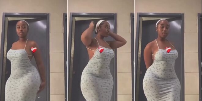 Ever stumble upon a moment of pure, unadulterated joy online? This video is just that! A young woman transforms a mundane public restroom into her personal runway. Sporting a charming light blue floral dress and a playful white headband, she radiates confidence as she dances and poses to a catchy tune. It’s a burst of lighthearted energy you won’t want to miss.