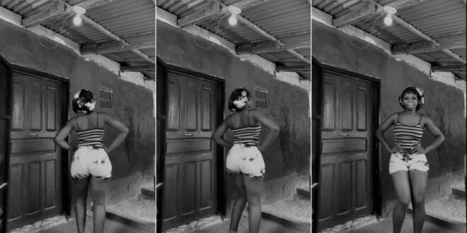 Dressed in a classic striped top and patterned shorts, she flows through playful spins and confident poses under a single glowing bulb. Tap play now to catch every smooth transition and feel the rhythm for yourself.
