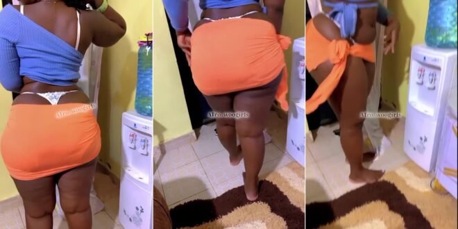 The bright orange skirt and blue top make for a perfect look. Check out the full video to see all the action!