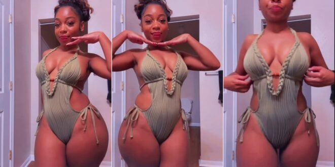 Check out this stunning look featuring a gorgeous light green ribbed monokini. It’s all about confidence and playful energy in this latest clip.