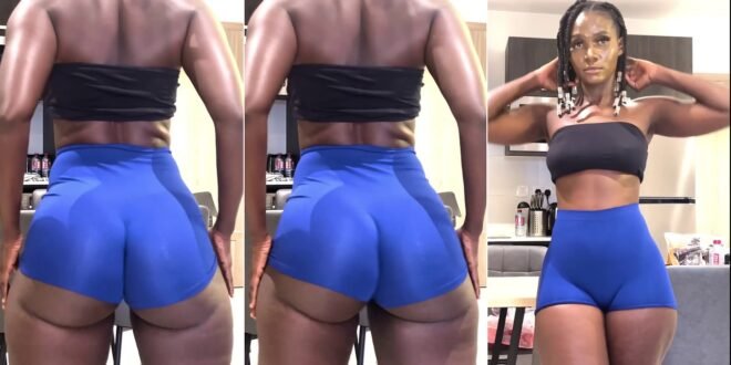 Watch closely as she adjusts her beaded braids and gently stretches the back fabric to prove the shorts offer great coverage. Hit play now to watch the full video and see exactly how this outfit fits on camera.