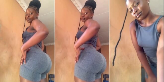 The warm peach walls and upward camera angle really emphasize her graceful movements and chic braided updo. Tap play to watch the full video and see how effortlessly she pulls off this trendy outfit.