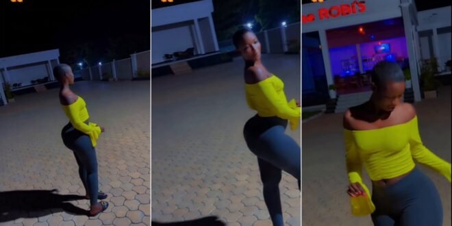 The backdrop amplifies the atmospheric tension, as shadows stretch across the paved patio beneath a glowing red neon sign reading ROBI’S. Cool blue light spills from the venue’s doorway, creating a cinematic contrast that highlights every fluid movement and poised stance. Whether she is turning toward the lens with a radiant smile or showcasing the dynamic lines of her silhouette, the footage radiates an infectious sense of joy and urban nightlife charm. Watch the full video to experience the complete rhythm and visual storytelling for yourself.